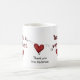 Teacher appreciation mug expresses your thank you with the words "Teaching is a work of heart" with heart graphics to match, and text you can customize to teacher's name. Works well on all styles and choices of mugs. Created in part with purchased licensed clipart by Alice Smith from Clipart4Resale.