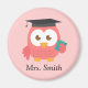 Express thanks and appreciation to your wonderful teacher with this cute magnet that has a cartoon teacher owl that is wearing a professor hat and holding a book in its wings. The owl is suited because it stands for wisdom and knowledge. Pastel pink for background. Personalise with teacher's name.
