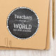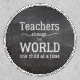 "Teachers change the world, one child, at a time" thoughtful white typography script quote patch on a dark chalkboard background. It could make a nice thank you gift to your best teacher for the appreciation day or birthday.