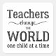 "Teachers change the world one child at a time" thoughtful white typography script quote on white (changeable) background. It could make a nice thank you gift to your best teacher on teacher appreciation day. To change the background color, select CUSTOMIZE option.
