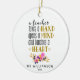 Teacher Appreciation Typography Custom Ornament| Show your favorite teacher how much they are appreciated. This personalized ornament features pretty typography that reads "a teacher takes a hand, opens a mind and touches a heart Accents in gold lettering. Pink and violet watercolor flowers. Any teacher would love this ornament! Personalize with your favorite teacher's name. Ornament is part of a collection.