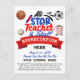 Teacher Appreciation Week All-Star PTO Itinerary Thank You Postcard. In colors red, white, and black. Images of sports with a baseball, soccer ball, and basketball. Popcorn represents one of the snack foods in the teacher's lounge from the PTO or PTA group. Personalize this with the Appreciation, date, thank you, school, and information. Edit it further to make more changes.
