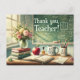 Here’s your watercolor-style Teacher Appreciation Week postcard! 🎨📚 The image features a vintage chalkboard with elegant white calligraphy reading "Thank You, Teacher!", along with classic apple and book elements in a cozy classroom setting.