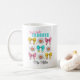 Colorful and cute mug featuring bow pencils and happy daisies in retro coquette style, not just for first grade teachers. Easily personalize the text or leave some blank - Kate Eden Art