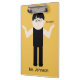 A graphic design of a cartoon guy on a teachers clipboard. The clipboard has the text Because I'm the teacher. ©2015charmainepaulson