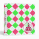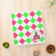 A binder for teachers with a hot pink and green argyle design on front, back, and spine. The logo of The Pink Schoolhouse inside Pink Circle Shaped Frame with sheer background at bottom right corner. Add your own text to the spine and front. To change text size, style, color, or position, just click "customize it!"