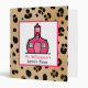 A teacher binder featuring a leopard print design covering outside surface. Pink Schoolhouse logo inside square on front. Personalize with your name.