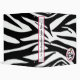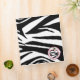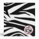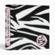 A binder with a zebra print design on the front, back, and spine. Matching zebra print apple inside pink circle shaped frame with sheer background at front bottom right. Add your own text to the spine. To change text size, style, color, or position, just click "customize it!"