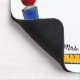 This cool mouse pad is perfect for teachers or students. The background is white with a stack of books and apple on the left and a yellow ruler on the right with a name to personalize in black handwritten typography. Makes a great gift for teachers or students for any occasion.