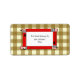 A label featuring an illustration of four red pencils forming a rectangle at center. Background is tan gingham. Personalize with your name.