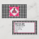 A business card for teachers featuring a houndstooth background with a retro square diamond design with Pink Schoolhouse logo inside. Opposite side features houndstooth border with pink accents. Add your own information. Use the design tool to change, add, or delete any designs or text. Font color, size, style, and position may also be changed. Just click "customize it!"