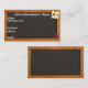 This business card is perfect for a teacher or anyone involved in education or childcare. The background is a wood framed chalkboard with a shiny red apple in the lower right corner and a post it note in the upper corner with an A+ sign. The back is open for any custom text you might like to add.