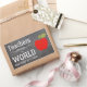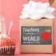 "Teacher change the world one child at a time" thoughtful white typography script quote and red apple on blackboard background. It could make a nice thank you gift to your best teacher on teacher appreciation day.