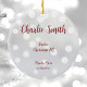 Lightweight, smooth, pure white ornament with nice sheen. Perfect size to be seen from across the room ... and to attract closer inspection! Price was great for ordering enough for the whole family! Clear, bold black design just as requested. Matches the order exactly. Just so nice!