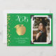 Celebrate the new teacher graduate from education school with this gold and Green teacher apple with graduation hat, graduation announcement! Elegant with a vintage photo border and gold confetti accents! Perfect for anyone graduating from college and becoming a teacher!