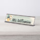 The perfect desk accessory. Your teachers name or your name on a tropical themed design. Features lovely arrangement of tropical island flora elements and a toucan bird. Perfect for work stations, desks, reception areas and more. Modern casual design in green, gold yellow and black.
