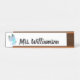 I was very pleased when I received my name plate. The brightness of the yellow caught my eye immediately because it was so true to color of the picture. The sturdiness of the material lets me know it won’t get bent or broken easily. The sturdiness of the card stock is a plus as well. The colors even on the chalkboard and apple are true to life colors. The apple looks like you can take a bite out of it.