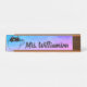 Cute cat peaking out off a tea cup or coffee mug colorful desk name plate monogrammed with your name, teachers name, stylists name or other professionals name. Perfect for sitting on your work desk,classroom desk,work station or reception area. Chic and stylish blue and purple watercolor background with line art drawing.
