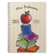 Show appreciation to your favorite teacher with this personalized notebook featuring your teacher's name and class year. Design has a red apple on top of a colorful stack of books and a neutral tan striped background.