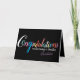 Newly qualified teacher congratulations on your graduation card with school chalkboard theme design.