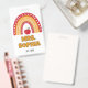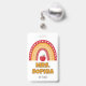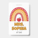 Featuring a cheerful rainbow and apple design, you can add your name and job title for a custom look.