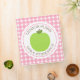 A binder featuring a background of pink gingham. Front features a green apple inside white circle with pink trim. Brown text reads "Lesson Plans" at top and "Daily Attendance" at bottom of apple. Spine is white with pink trim. Personalize spine text with your name or other text of your choice.