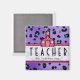 A magnet for teachers featuring a background of purple leopard print. Customizable text. Logo of The Pink Schoolhouse at top center.