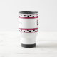 A teacher travel mug featuring a full wrap design of black polka dots against a white background. Hot Pink Trim. Features an illustration of an apple with black polka dots. Pink trim. Text underneath for personalizing with your name. Opposite side may also be customized with your own text. For example, grade level. Font style, size, color, and text position may be changed using the design tool. Also available in stainless steel.