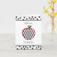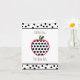 A notecard for teachers featuring a border of black polka dots and a matching illustration of a polka dotted apple with pink trim. Personalize with your name and message inside. Also available in greeting card size.