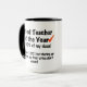 I was thrilled this came out so well. It is a very attractive mug with the colored handle and interior. Being able to personalize it was easy! It was designed for an end of the year thank you gift to the special recipient. perfect. Text lines up perfectly parallel to the top edge of the mug.
