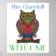 I do love this owl. Look at the colors and even the expression. I love it so much, I bought it twice since I wanted to be certain I had it licensed correctly (which I always am) to use here; yet, the first place I purchased it worded the terms a bit different than others, so to be sure all was legal, I have it covered with 2 purchased Extended Licenses, so ... purchase enough for the entire school for me to break even ... : ) Enjoy! Just change the name to yours. If you have a longer name, you'll need to click on CUSTOMIZE and then go to the area for font size which is the letter f. From there, you can play with sizes. Thanks, Sharon Rhea Ford , NBCT - ART(www.zazzle.com/sharonrhea*) Please Bookmark me and come to Zazzle via my link to see a couple thousand popular teacher products, and each was planned carefully with you in mind as I never want to let you down ... : ) Thanks.