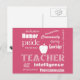 Teacher Pride+White Text Design/Pink Postcard