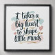 Celebrate the heart of every great classroom with this beautiful peel and stick photo tile. Featuring the inspirational quote “It Takes a Big Heart to Shape Little Minds,” this wall-ready piece is perfect for teachers, educators, or classroom décor. Lightweight, removable, and easy to reposition – a meaningful teacher gift for appreciation week, back-to-school, or holiday season.