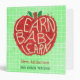 This cute, personalized apple design is perfect for school teachers. The apple has a splattered watercolor paint look with the funny words, "Learn Baby Learn." It's designed to look like the hand-drawn typography has been cut into the fruit. The background has a bright green grid pattern.