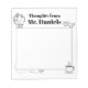 A fun and personal custom notepad with “Thoughts from Mr. Daniels” in bold lettering at the top. Playful doodles of a globe, glasses, and coffee mug frame the header, while a tiny paper airplane sketch glides across the bottom. Plenty of white space makes it perfect for notes, reminders, or classroom ideas.