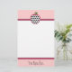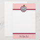 Stationery featuring a (customizable) pink background, white center, and hot pink trim. Top center features illustration of a white apple with black polka dots. Personalize the botttom center with your name. Look for more polka dot apple designs in the "Apples" category of The Pink Schoolhouse store.
