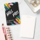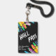 Teacher student hall pass with black background and crayons. Comes with lanyard attachment. Great for elementary school and middle school classrooms. Customize the teacher and class information.