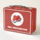 This is a standard metal lunchbox that appears to work just fine. We designed this box ourselves with an uploaded photo and custom text on the front and back. It looks absolutely beautiful except the front of the lunchbox is not centered like it shows in the photo. The print borders don't align with the inset flat part of the box where the preview photo online showed it perfectly centered in there. The back looks nice and centered though.