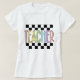 Colorful teacher t-shirt with checkered edge.