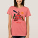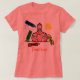 A teacher t shirt featuring a schoolhouse scene which appears to have been colored by a child with crayons in red, yellow, blue, and green which surround the illustration. Schoolhouse is red with illustrations of grass, a cloud, and the accenting the design. Red text reads "Teacher." Back side features a single red crayon. Personalize with your name under crayon. Look for matching items in the "Crayons" category of The Pink Schoolhouse.