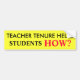 TEACHER TENURE HELPS, STUDENTS, HOW? BUMPER STICKER