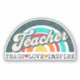 Retro style colorful grunge "Teacher - teach, love, inspire" text design with colorful rainbow and hearts decoration