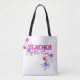 A teacher tote with a personalized name is a perfect way to show your teacher pride. The tote has pretty Flowers to add a sweet touch to a modern, trendy design that teachers will love. Makes a great gift for a special teacher, or for a teacher who wants to show their pride.
