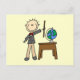 Stick figure teacher design features a male stick figure with a pointer and a world globe. Customize it with a name or other text!