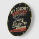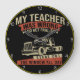 This humorous wall clock playfully refutes a common misconception about truck driving. Against a black background with a warm yellow rim, it features a semi-truck silhouette in white with red banner accents. The witty text proclaims: "MY TEACHER WAS WRONG I DO GET PAID TO STARE OUT THE WINDOW ALL DAY". It's a lighthearted gift for any truck driver who enjoys the scenic aspects of their long hauls. The design tool can also be used to add custom text if you want your name or company on this clock. You can customize the color of the frame to any color you desire by going into the design tool.