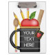Teacher's Apple in a Blackboard Mug on a clip board. Give an Apple for Teacher in an old-school Blackboard Mug, with "Pencil" Teaspoon, Tea Tag, Ruler and Yellow Pencils. Add your own message or text. Choose just the perfect gift for teachers on a huge range of fun items. By Anni Arts.