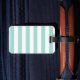 A fun and lighthearted seafoam green striped Luggage tag featuring a stylized apple illustration. Inside of this apple is your favorite teacher's name in a playful style font.