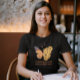 I love wearing a reprint of my colored pencil drawing of Annie the cat looking over the hillside. My illustration is based on a picture I took of Annie the manx cat. The printing turned out lovely, and the shirt is soft and thick. The American Apparel shirt run on the smaller size, so I always order a large or extra large.