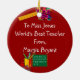 Lightweight, smooth, pure white ornament with nice sheen. Perfect size to be seen from across the room ... and to attract closer inspection! Price was great for ordering enough for the whole family! Clear, bold black design just as requested. Matches the order exactly. Just so nice!