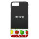 Teacher's iPhone 7 Plus case in black, with graphics of colorful apples, on a white stripe, at the bottom. White custom text reads iTEACH and is ready to read what ever you want. the text for yourself or as a gift. Great way to protect your iPhone and be stylish too. Makes a great gift idea, to add any text you want.